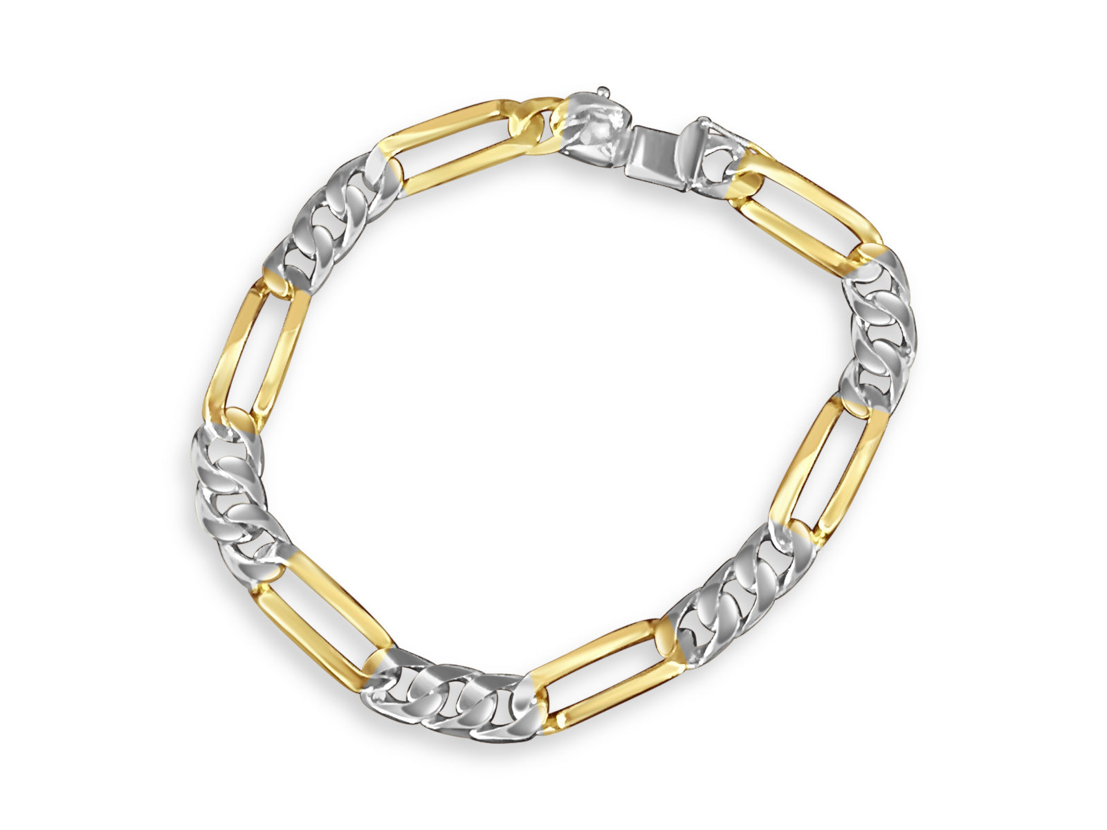 Title: Figaro Solid White/Yellow/Rose Gold Handmade Bracelet, 8mm, 6.5-10 Inch