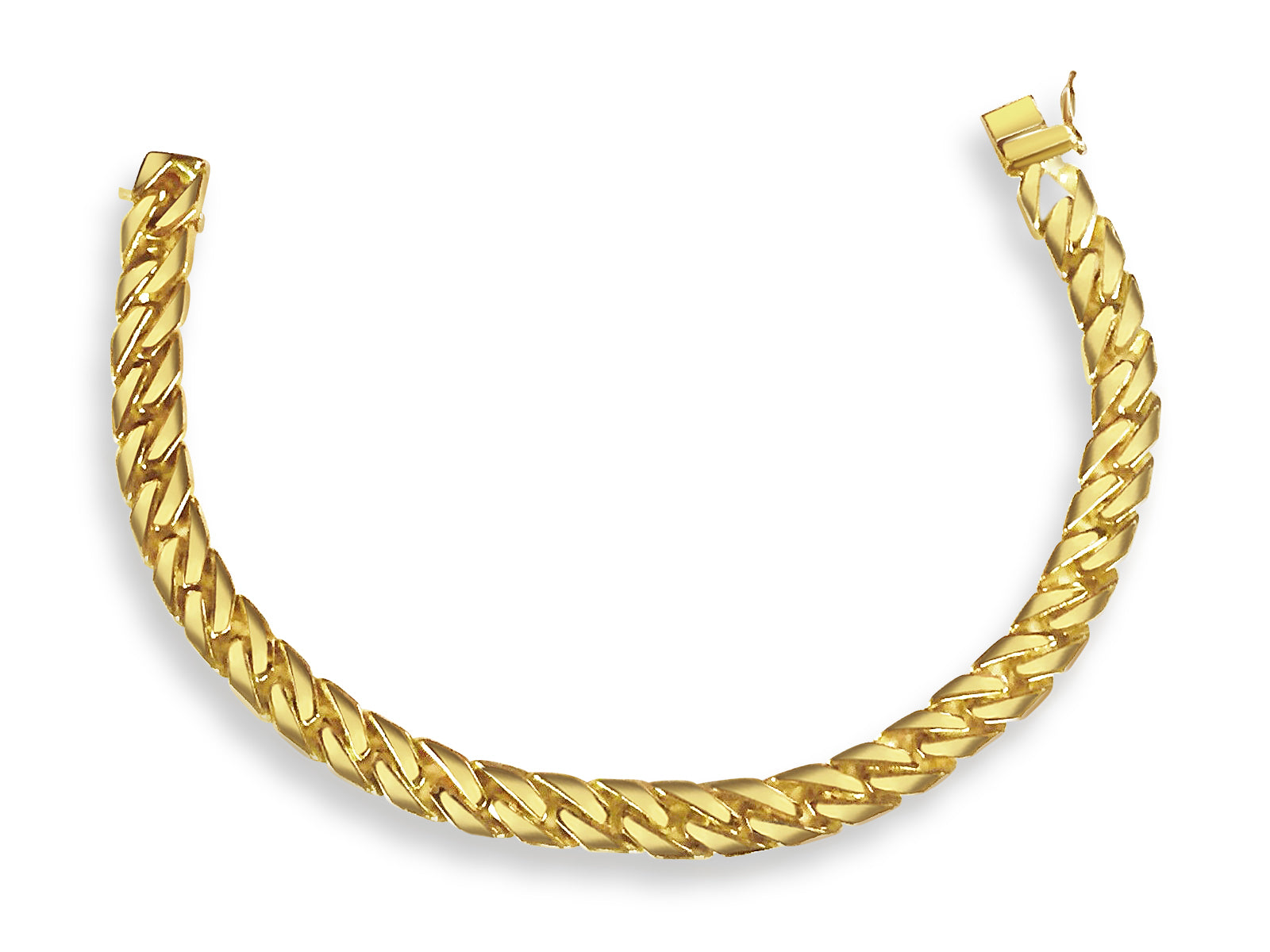 Crafted with precision by our seasoned artisans, each link of this bracelet tells a story of heritage and tradition. Available in 10K, 14K, or 18K gold, with a dimension of 8mm, it strikes the perfect balance between boldness and refinement. Choose from multiple gold colors such as; Yellow, White, Rose, Two-Tone, or Tri-Color to suit your style.