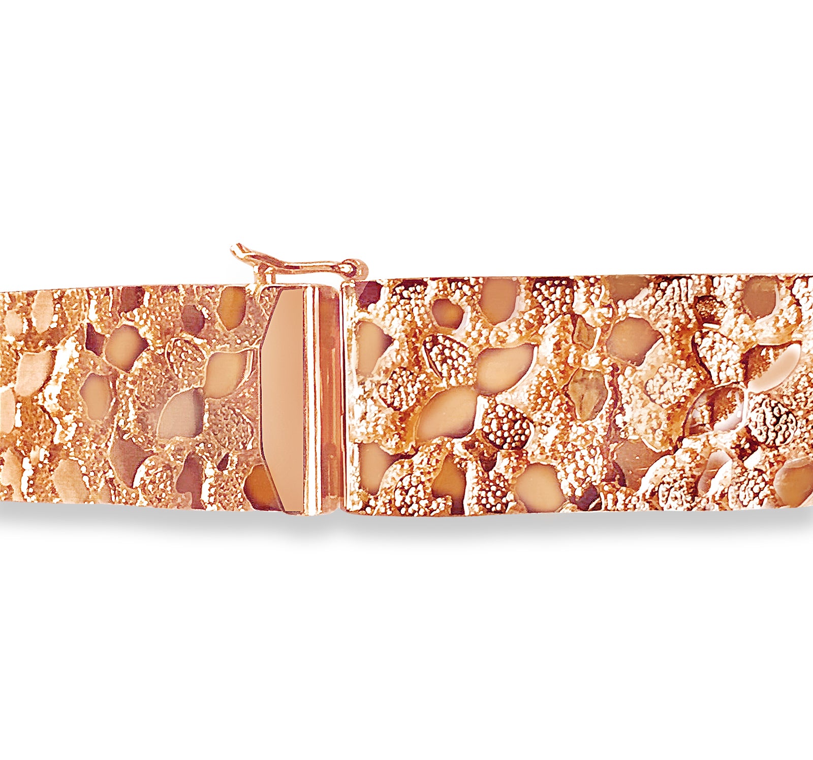 Crafted with precision by our seasoned artisans, each link of this bracelet tells a story of heritage and tradition. Available in 10K, 14K, or 18K gold, with a dimension of 17mm, it strikes the perfect balance between boldness and refinement. Choose from multiple gold colors such as; Yellow, White, Rose, Two-Tone, or Tri-Color to suit your style.